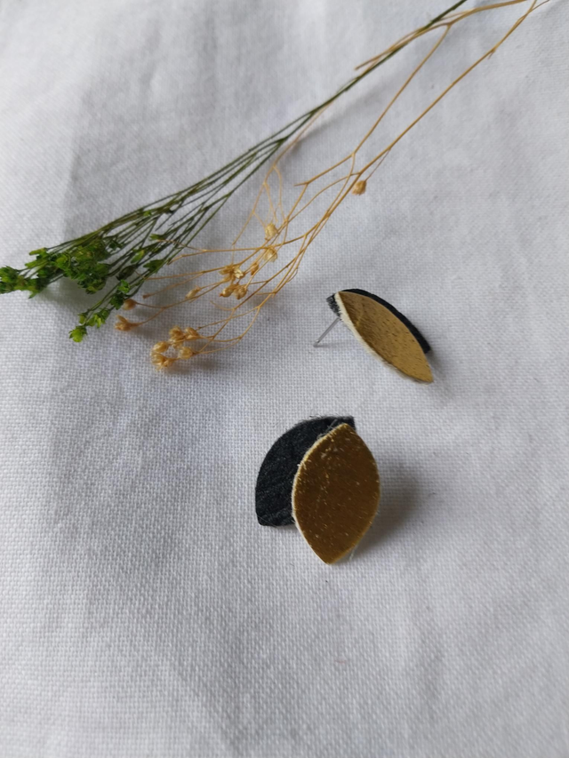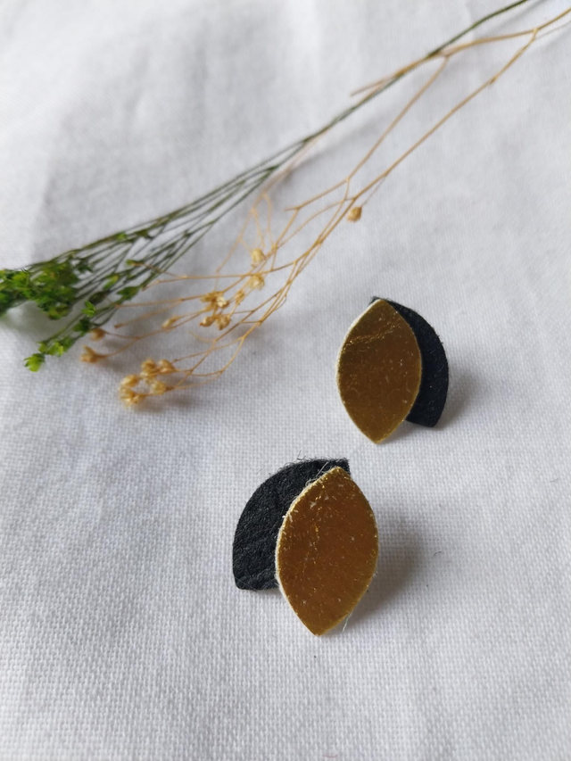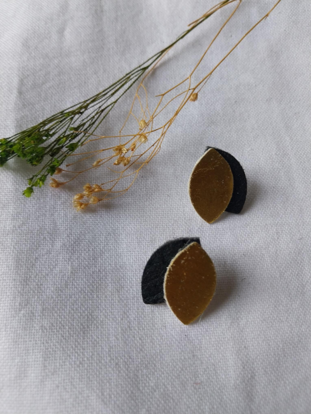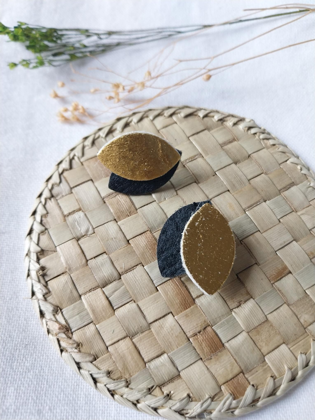 ✨️ Boucles d'oreilles en matière végétale d'ananas. Couleur noir et or.