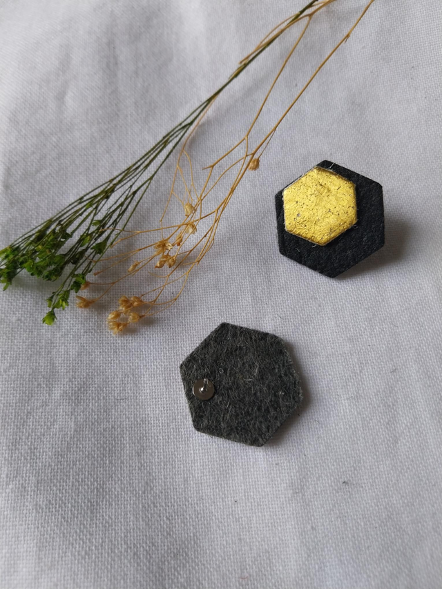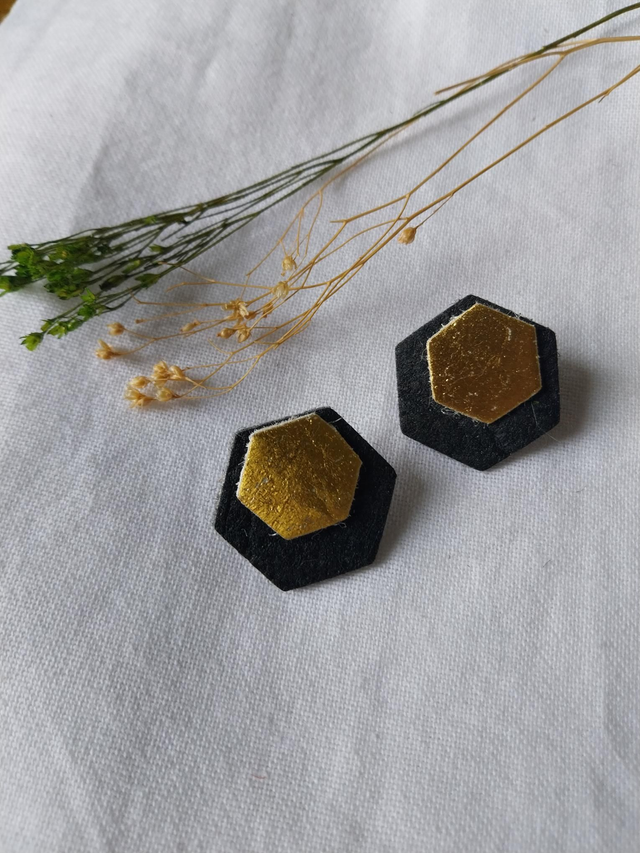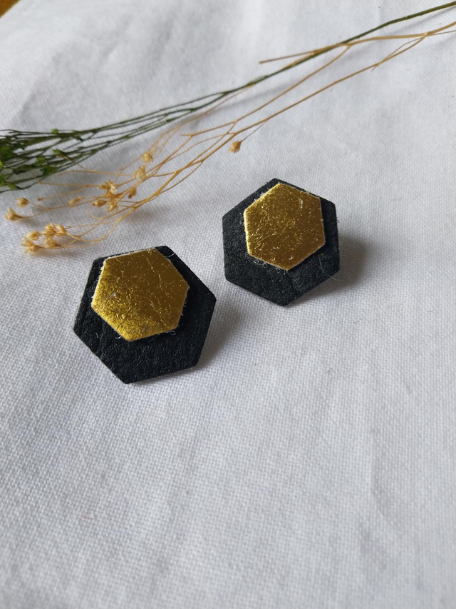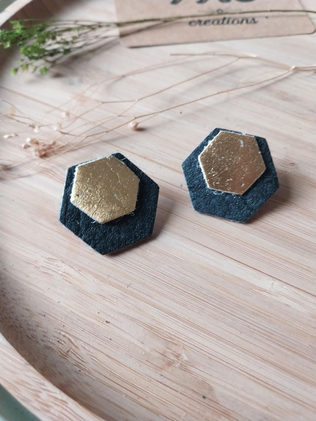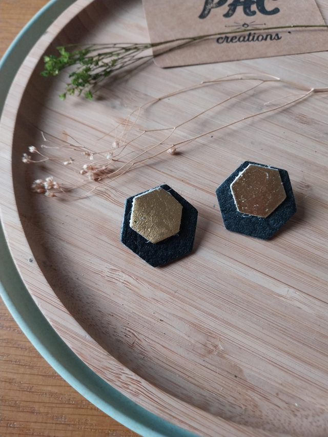 ✨️ Boucles d'oreilles en "cuir" d'ananas. Couleur noir et or.