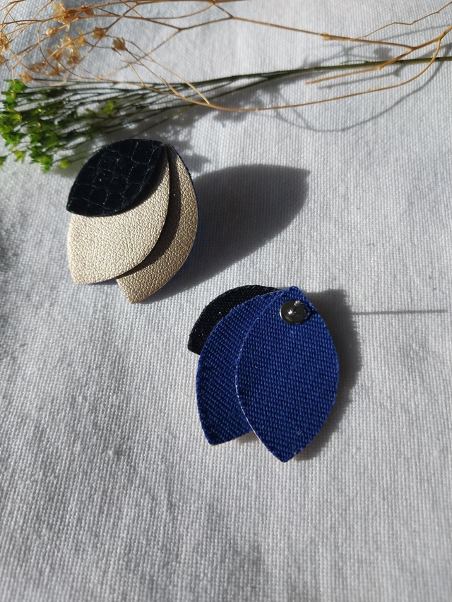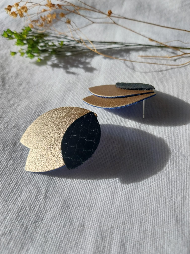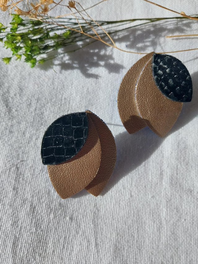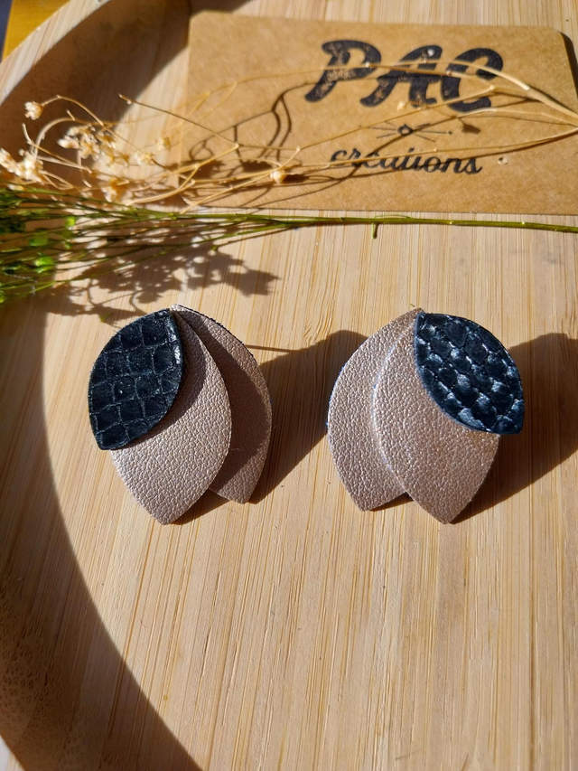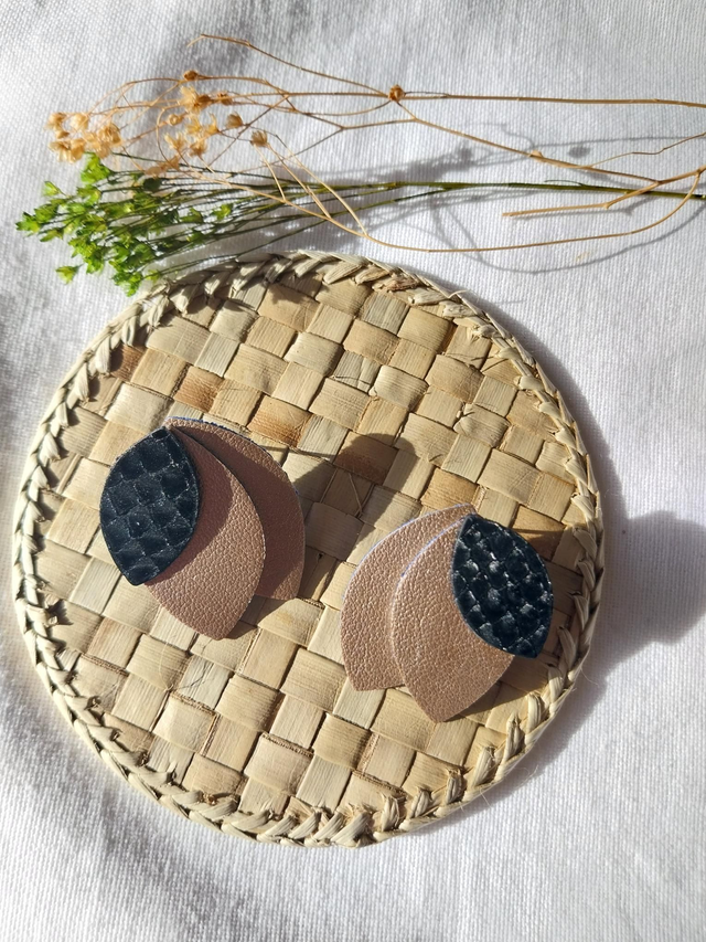 💫 Boucles d'oreilles en matière végétale de céréales, couleur beige champagne et noir motif "reptile".