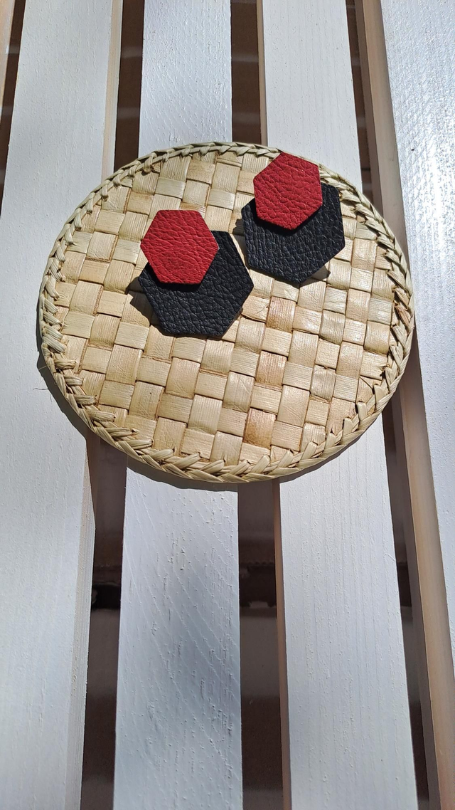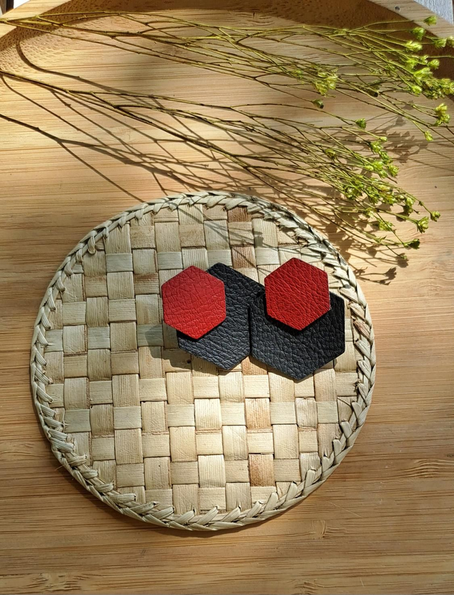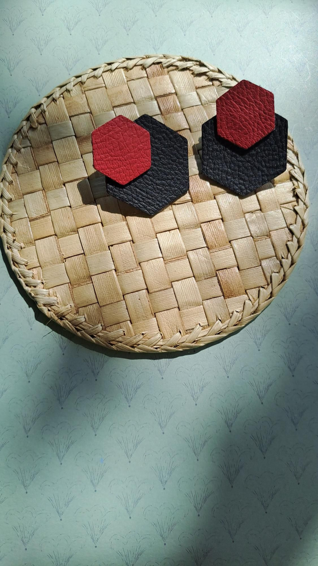 ✨️ Boucles d'oreilles noir et rouge en matières végétales de pommes.