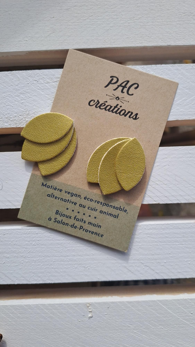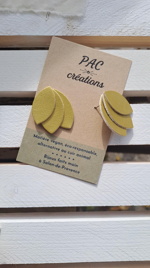 ✨️ Boucles d'oreilles 3 Feuilles en matière végétale de pommes (Appleskin).