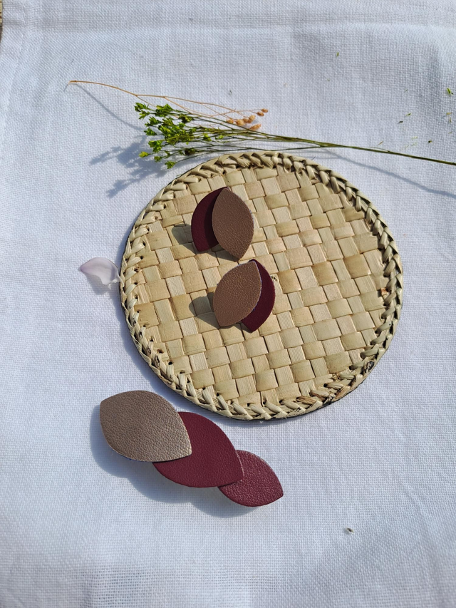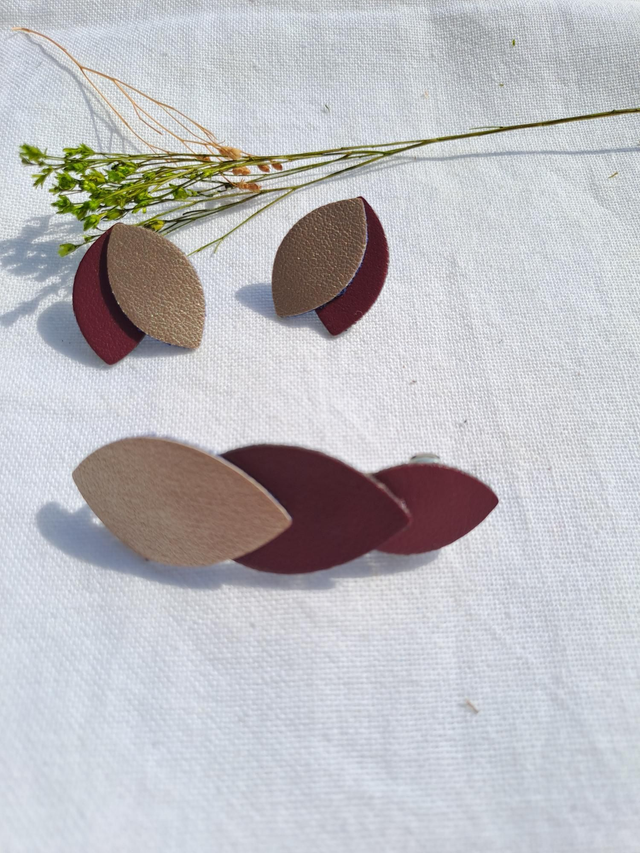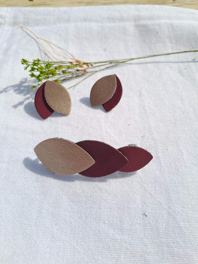 ✨️ Barrette en matière végétale de céréales, bordeaux et beige/champagne.