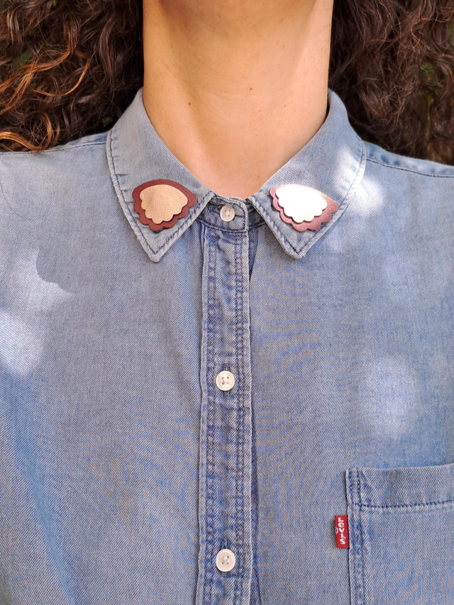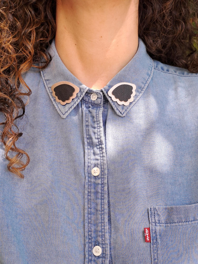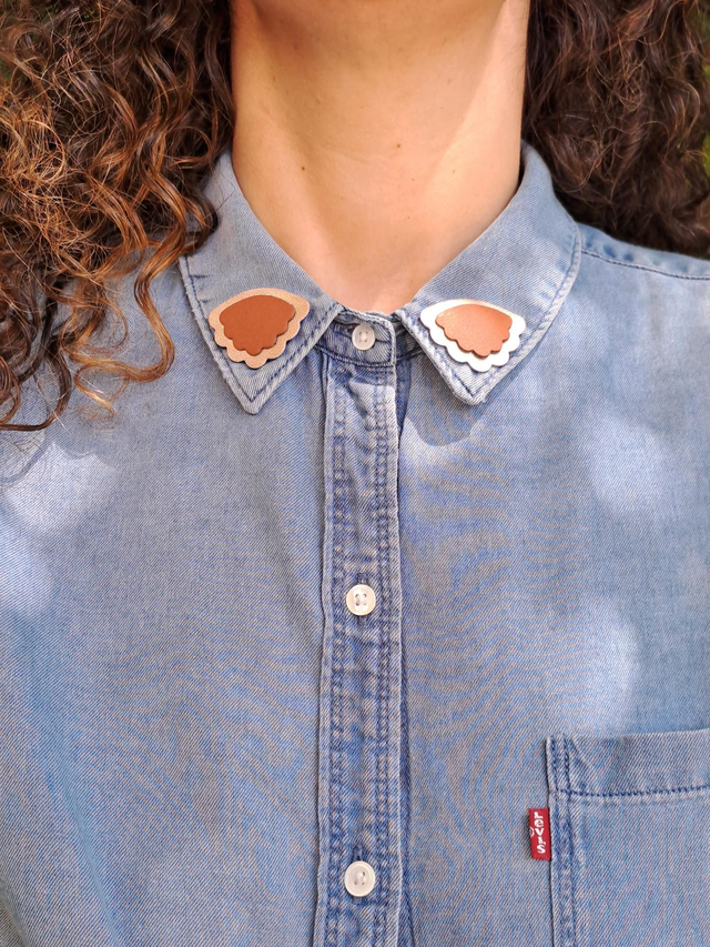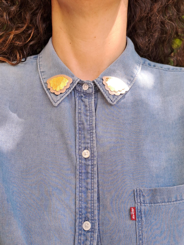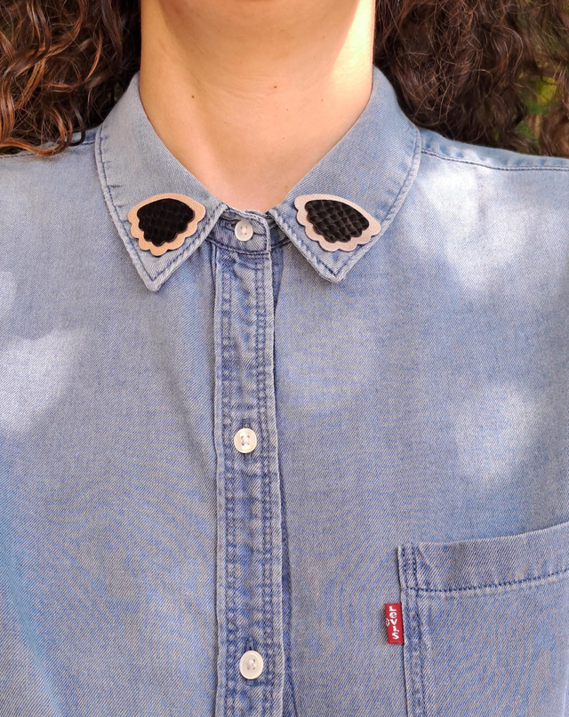 ✨️ Bijoux de col de chemise en matières végétales de céréales pour la partie beige/champagne et en matière végétale de pommes pour la partie bleu
