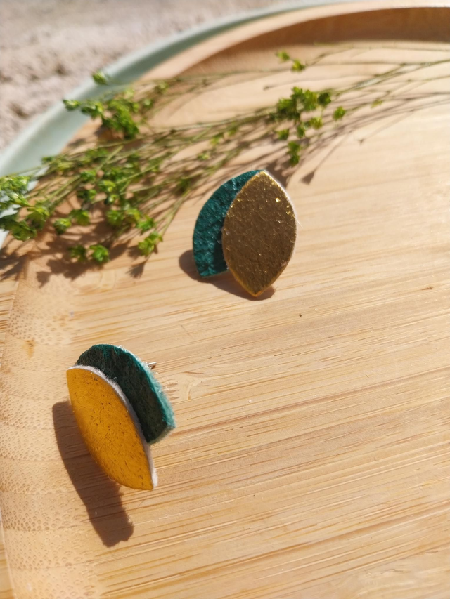 ✨️ Boucles d'oreilles petits citrons en matière végétale d'ananas. Couleurs vert et jaune.