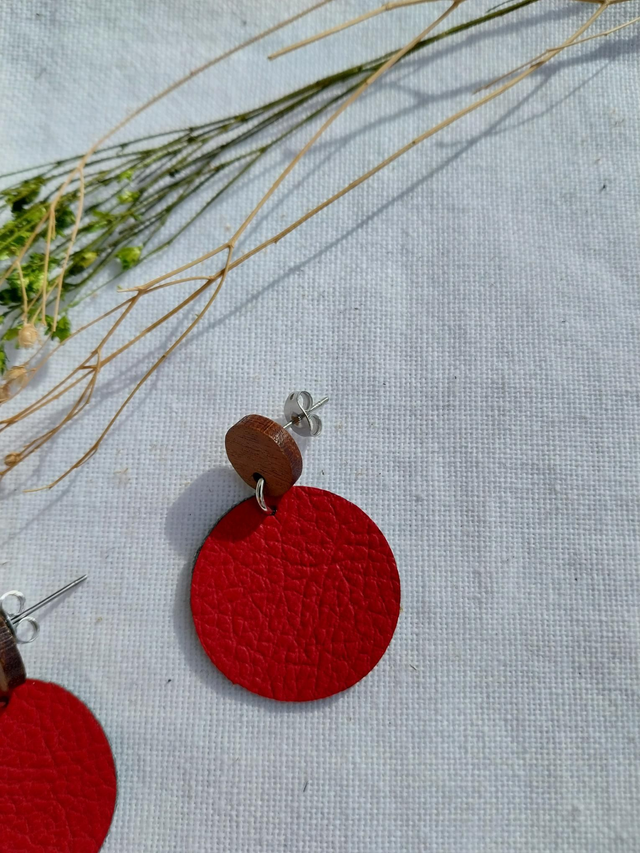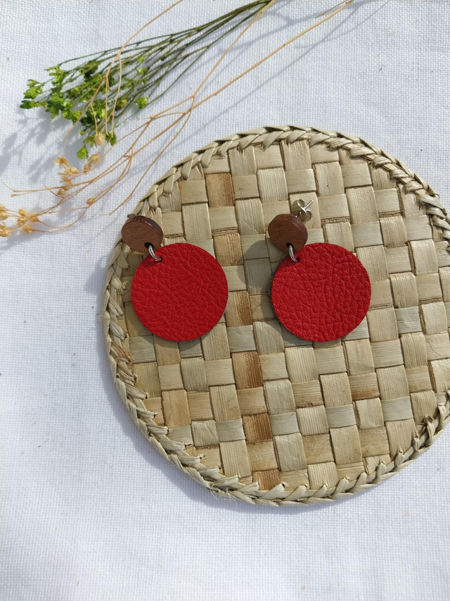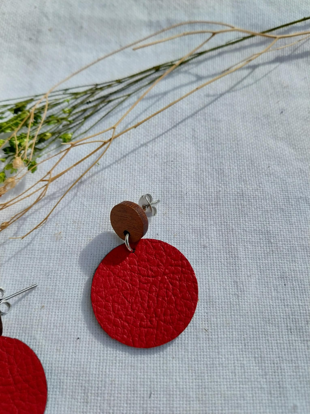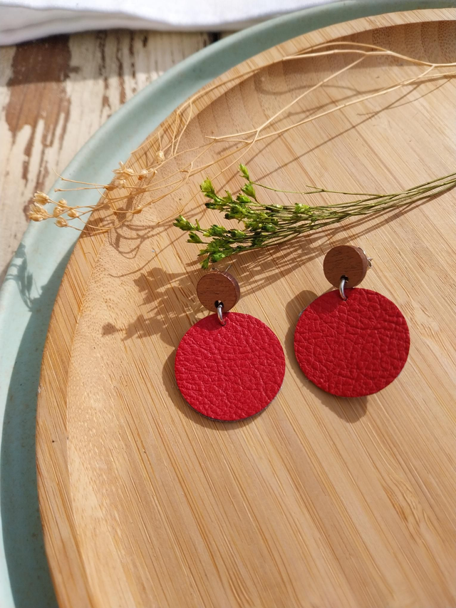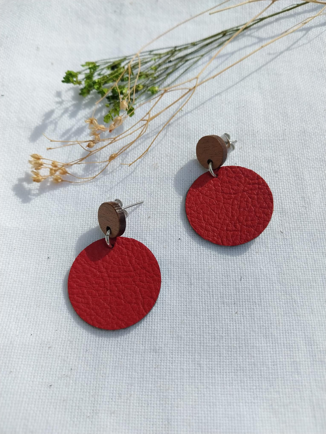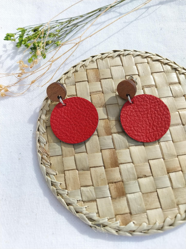 ✨️ Boucles d'oreilles rondes rouges, en matière végétale de pommes, issu des résidus de la pomme de vergers italiens.