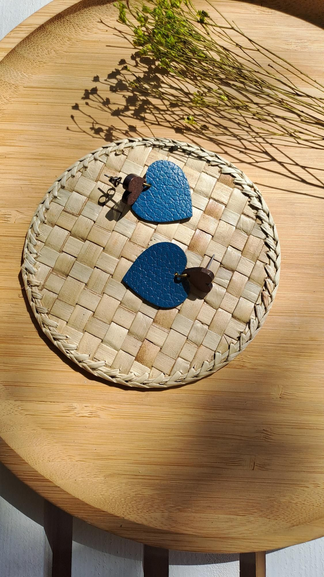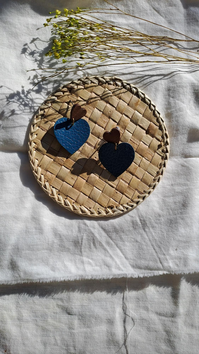 ✨️ Boucles d'oreilles Coeur bleu en matières végétales de céréales.