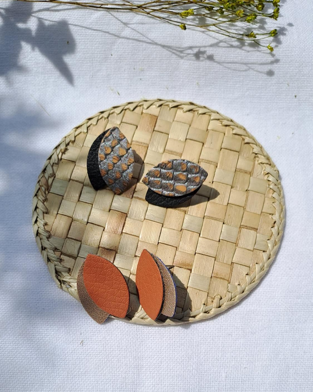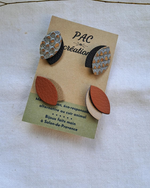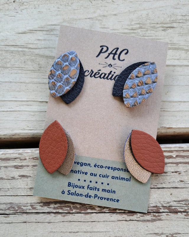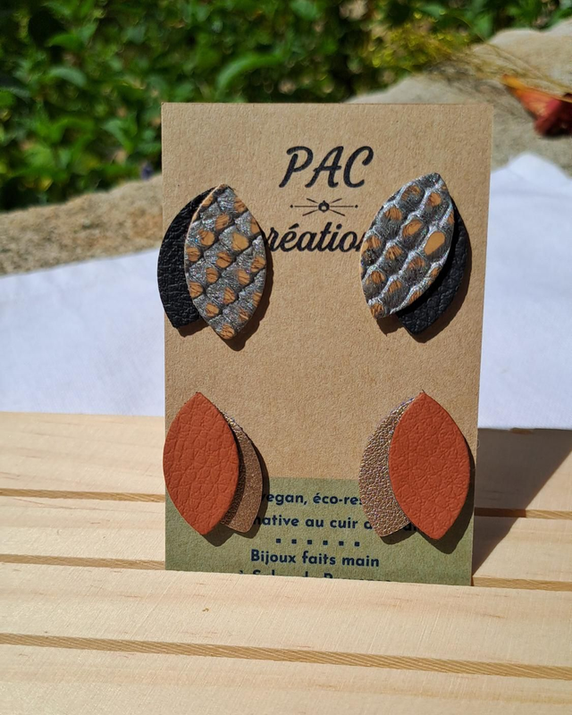💫 Boucles d'oreilles couleur noir et en liège gris impression reptile.