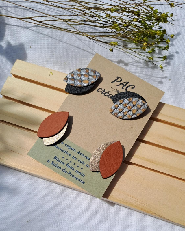 Boucles d'oreilles en matières végétales de céréales, pommes et liège